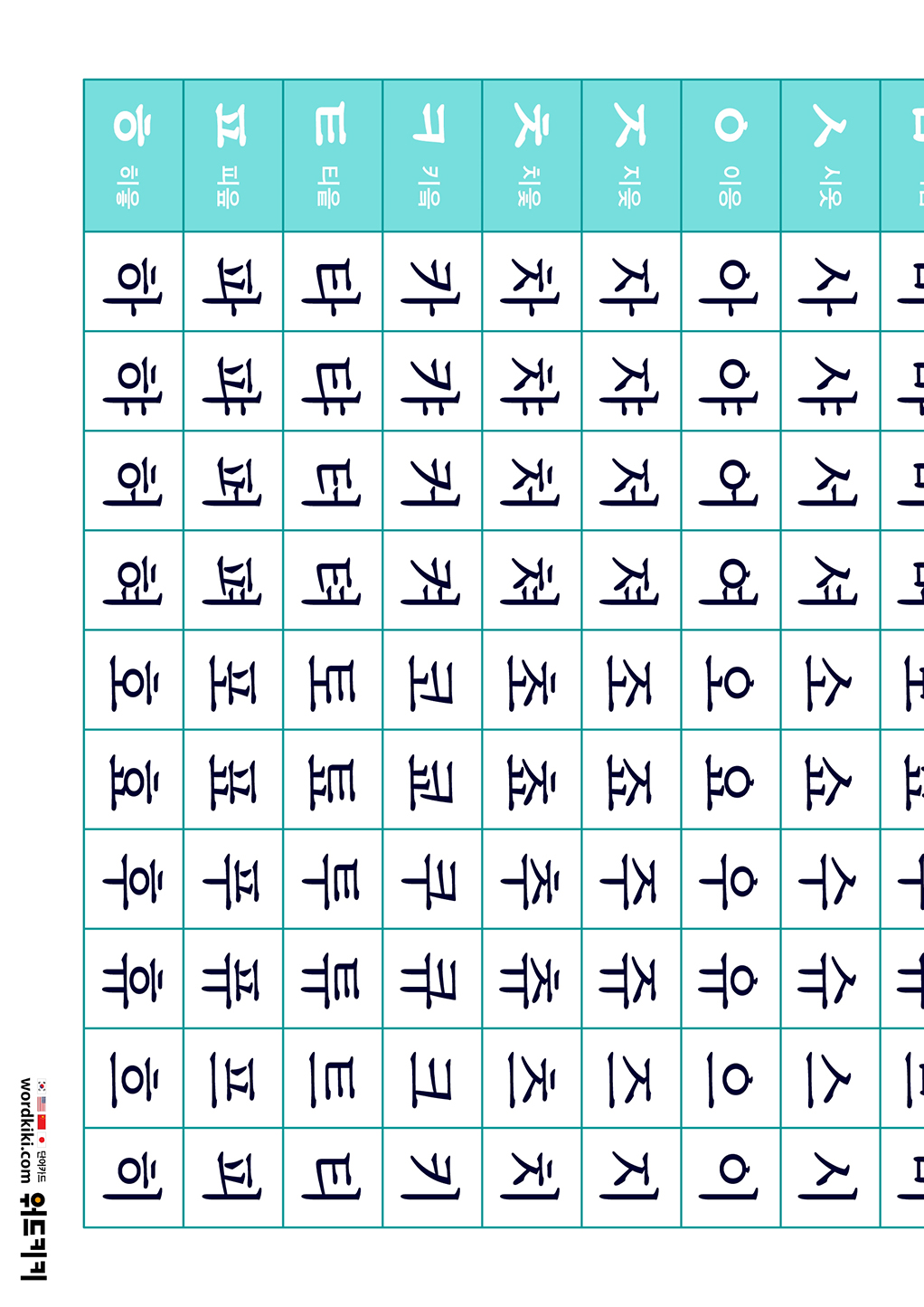 [한글 음절 포스터 만들기 3장] A3 사이즈 - 한글 음절표 가갸거겨
