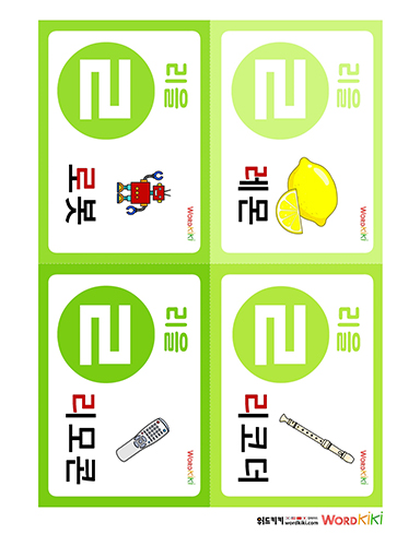 [키즈키키 자음카드 3장] 04 한글자음송 ㄹ – 리을송 단어카드, 단어 프린트 자료 자음송 리을단어카드