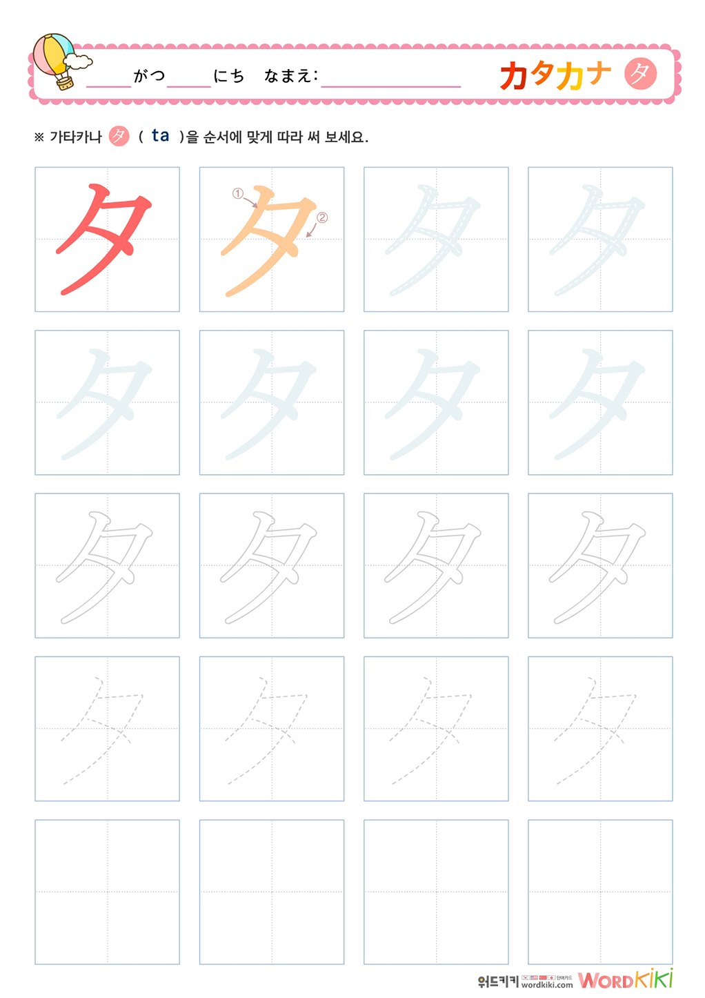 일본어 카타가나 쓰기 - Writing katakana タ行