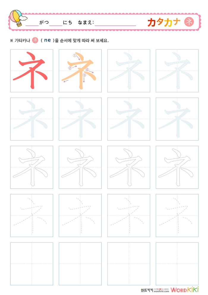 일본어 카타가나 쓰기 - Writing katakana ナ行