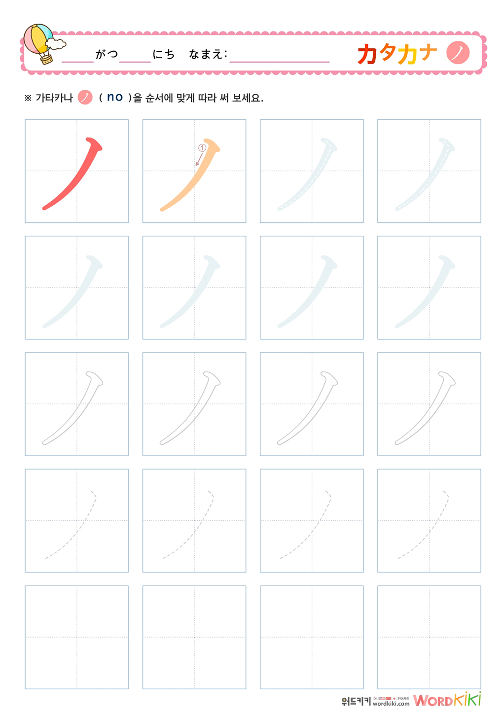 가타카나 カタカナ 따라쓰기 무료프린트학습지로 가타카나 쓰기 연습장입니다.
