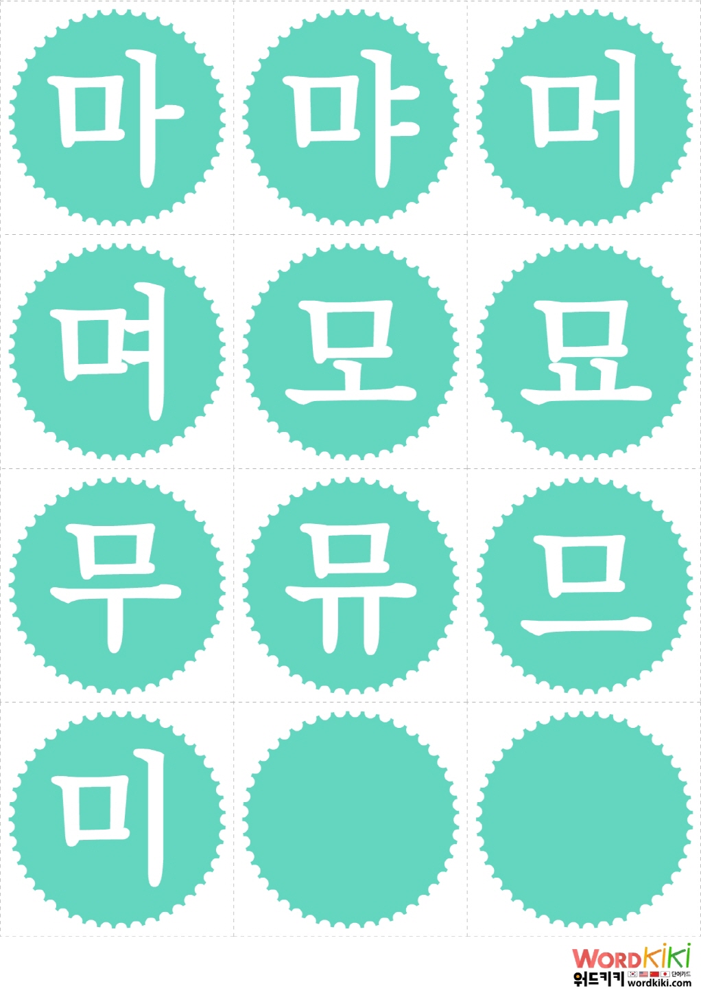 마 먀 머 며 모 묘 무 뮤 므 미