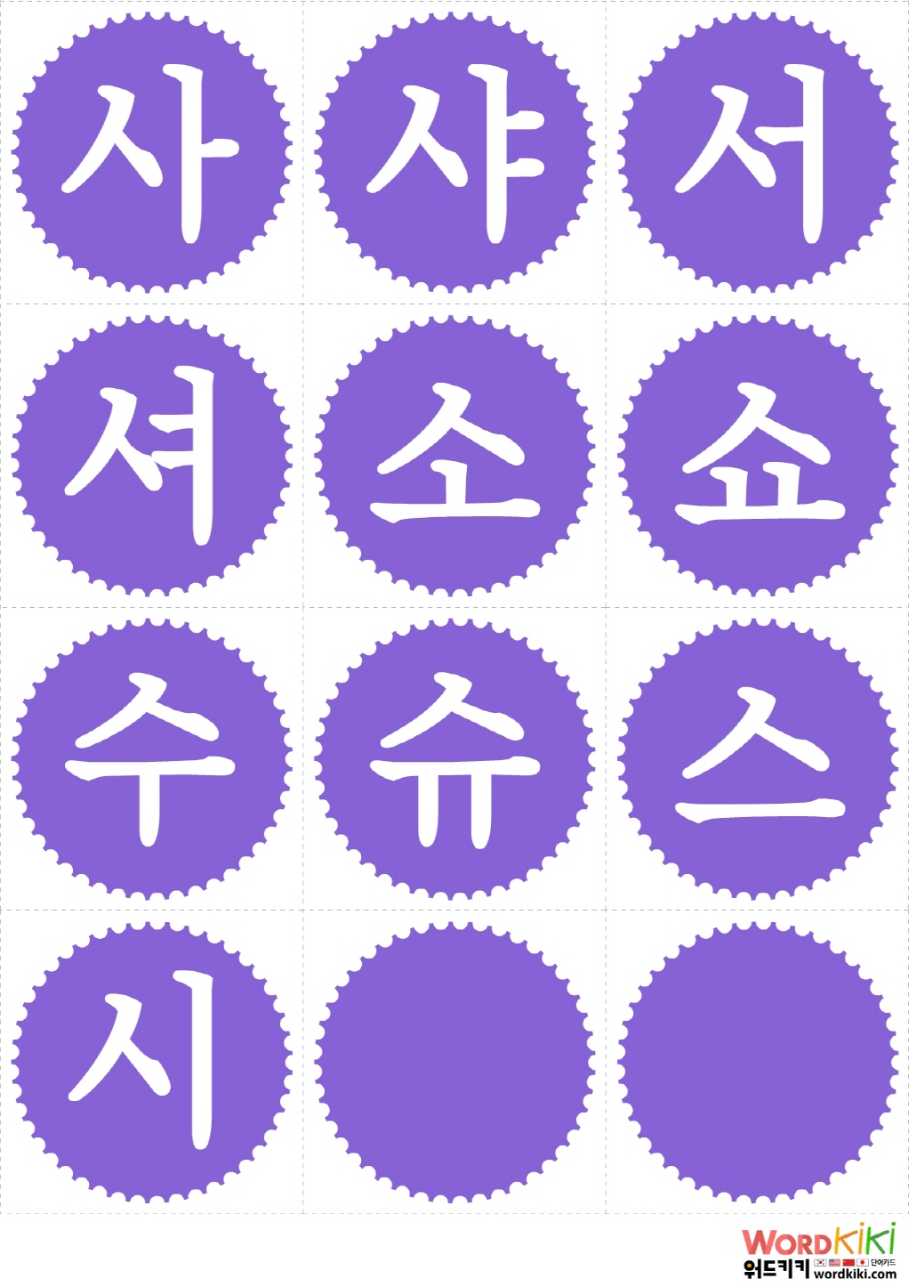 사 샤 서 셔 소 쇼 수 슈 스 시