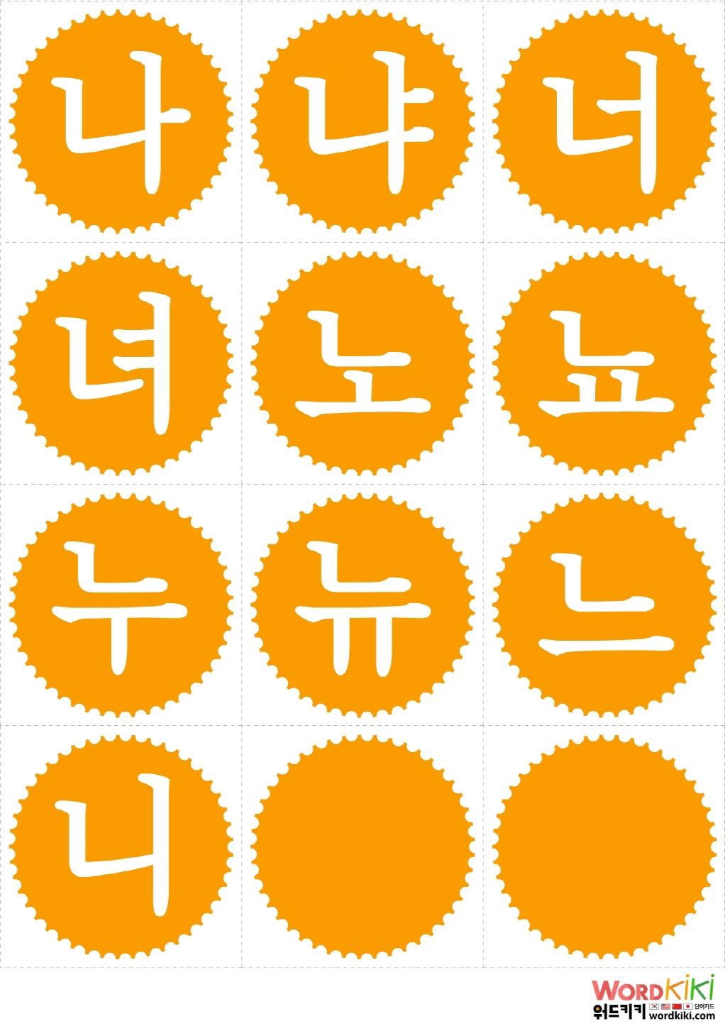 나 냐 너 녀 노 뇨 누 뉴 느 니