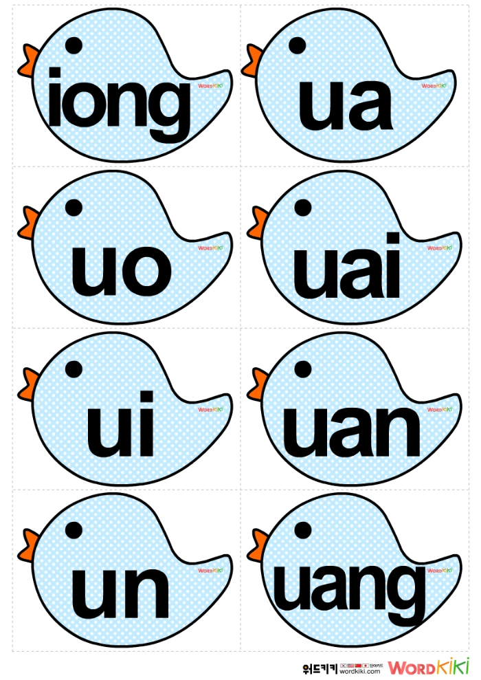 [운모카드 5장] 중국어 운모(모음)카드 – 8컷 병아리