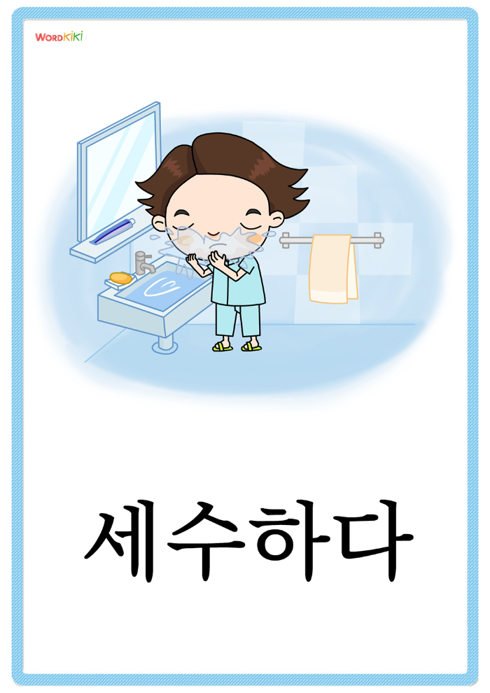 일어나다,양치하다,세수하다 등 일상생활과 관련한 단어 12개를 말할 수 있어요!!