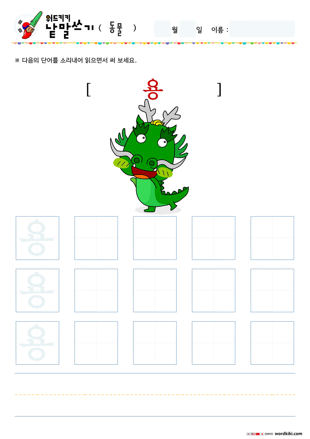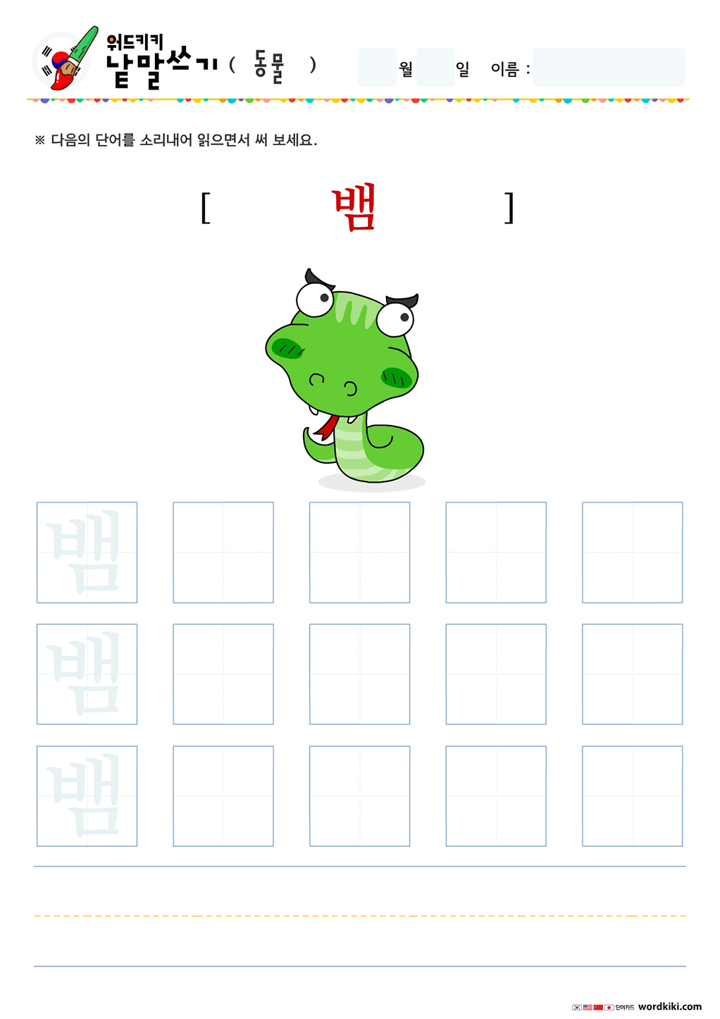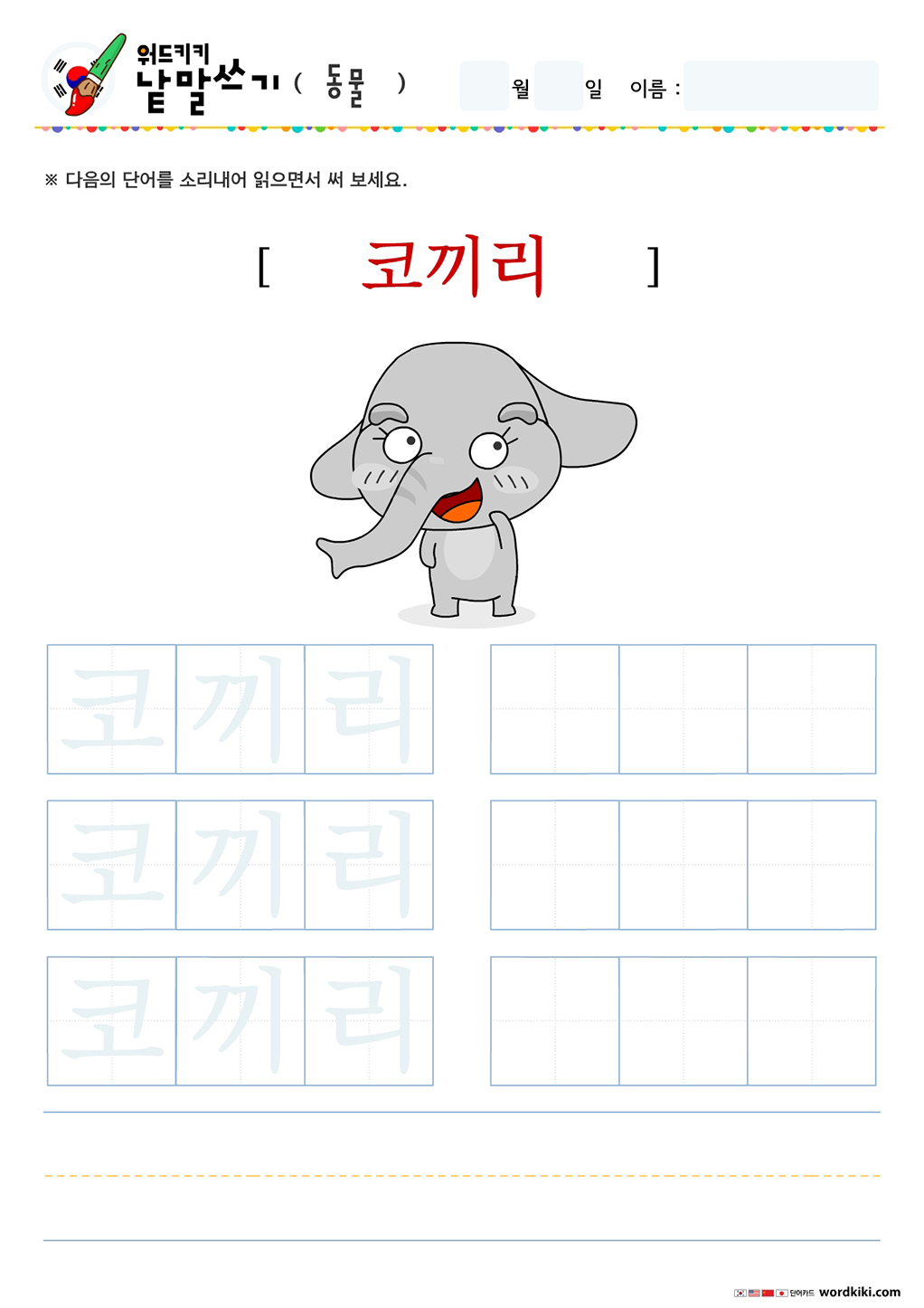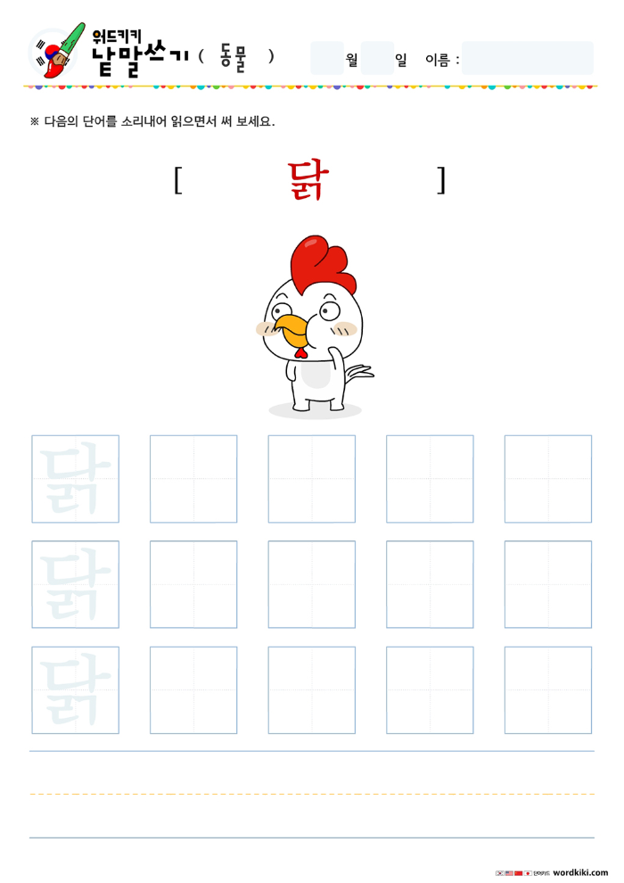 오늘 써볼 단어는 동물 테마의 한글 단어입니다.
