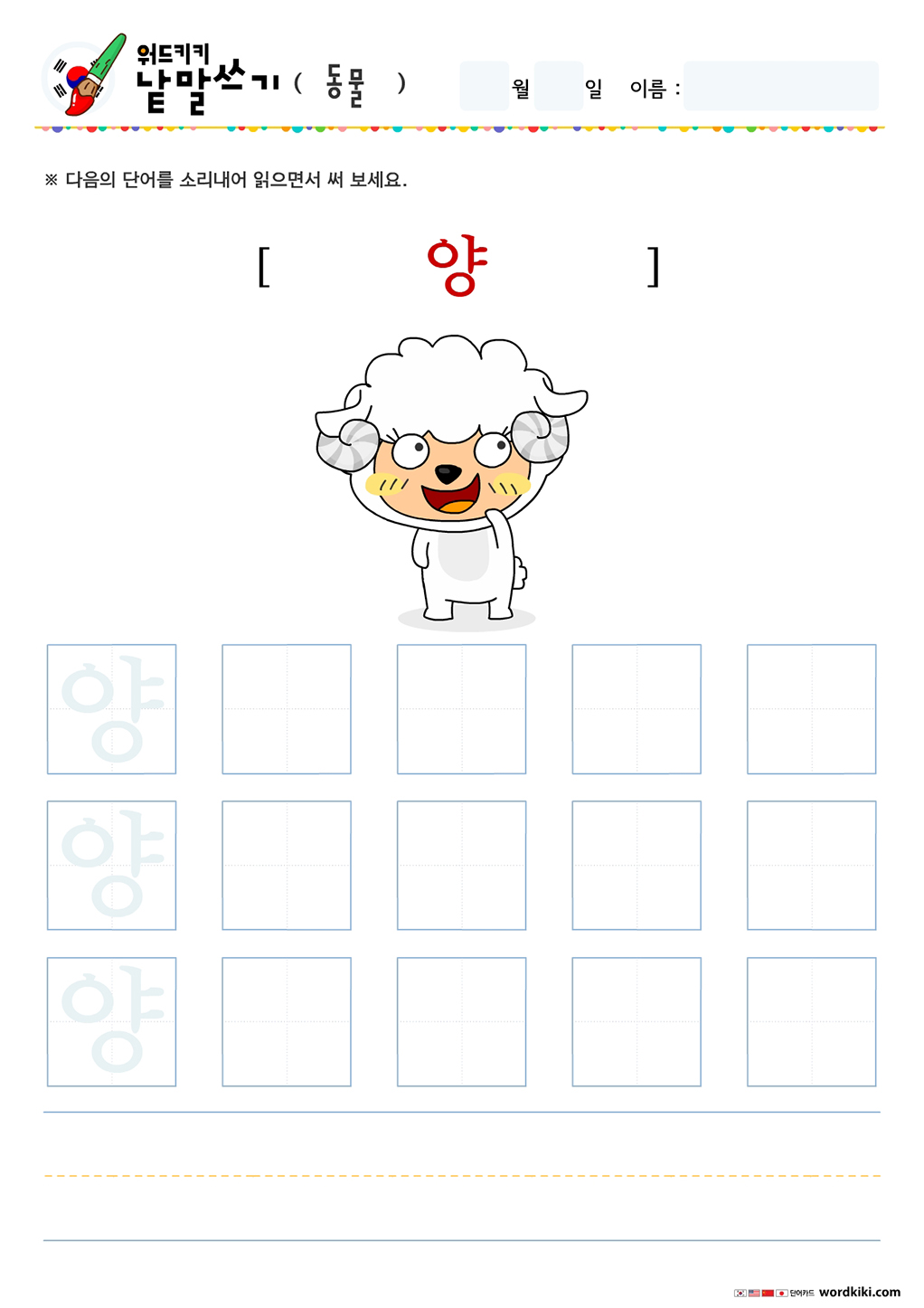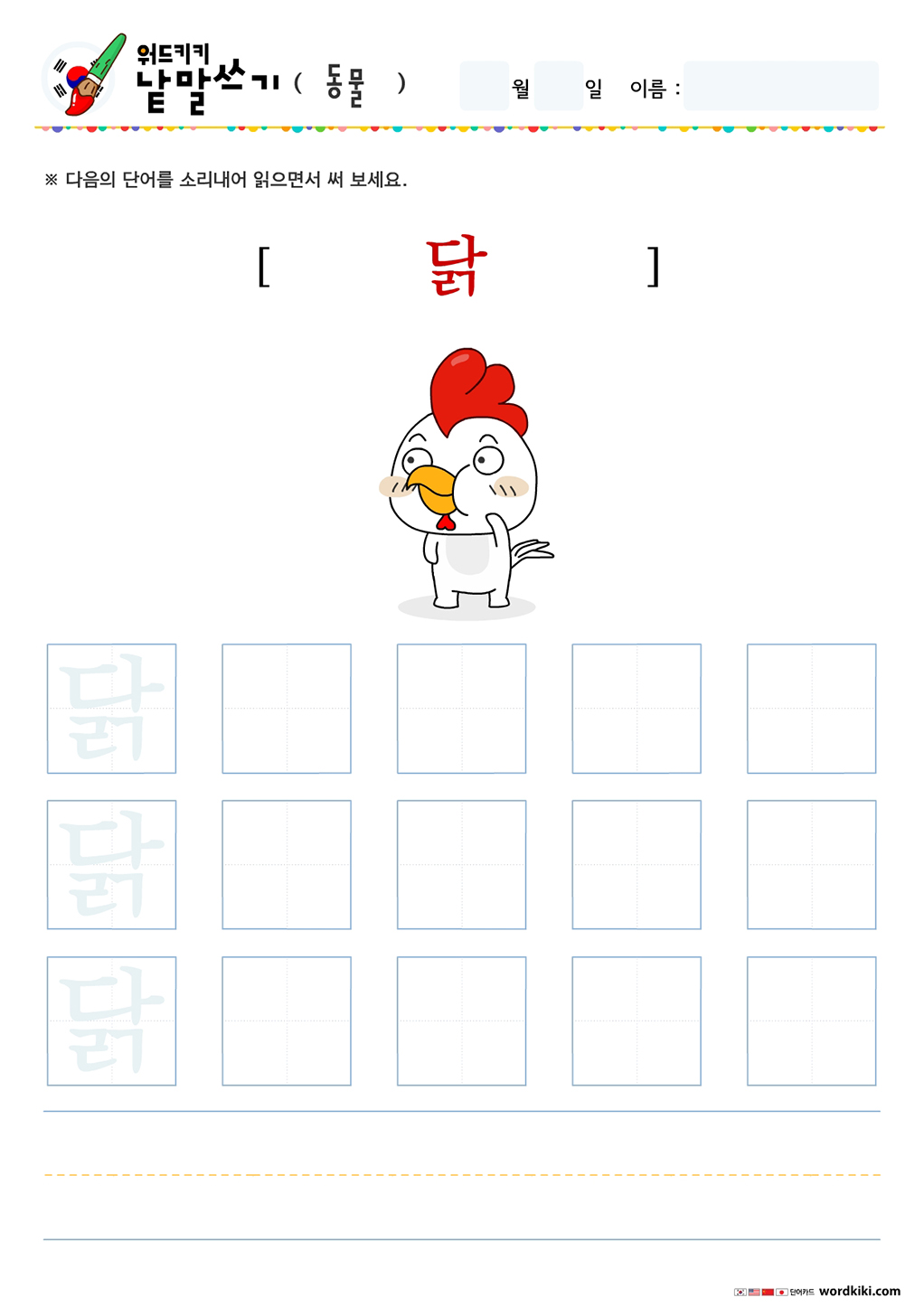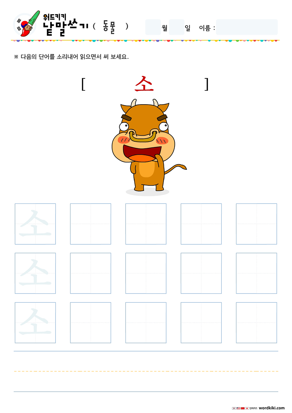 오늘 써볼 단어는 동물 테마의 한글 단어입니다.