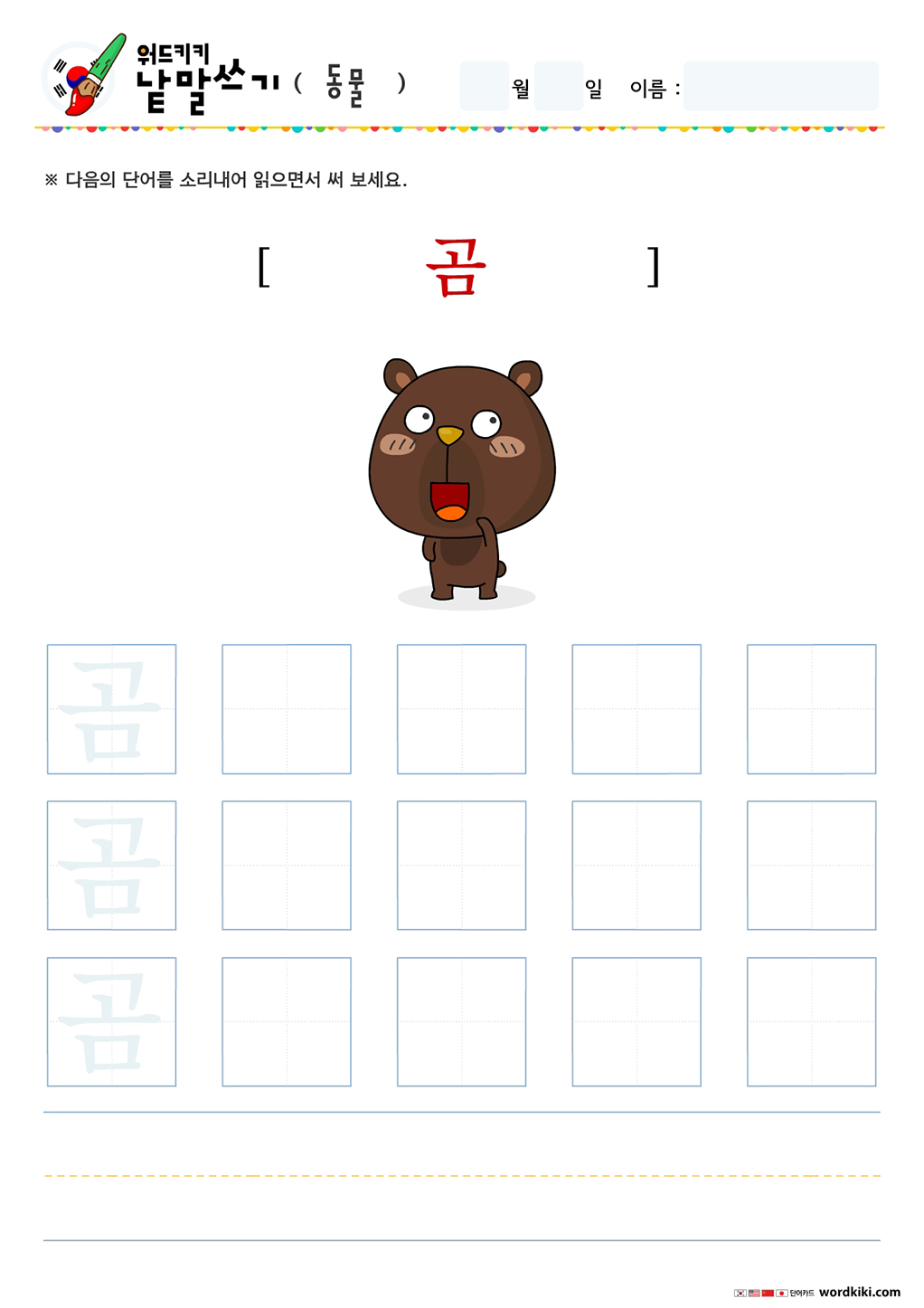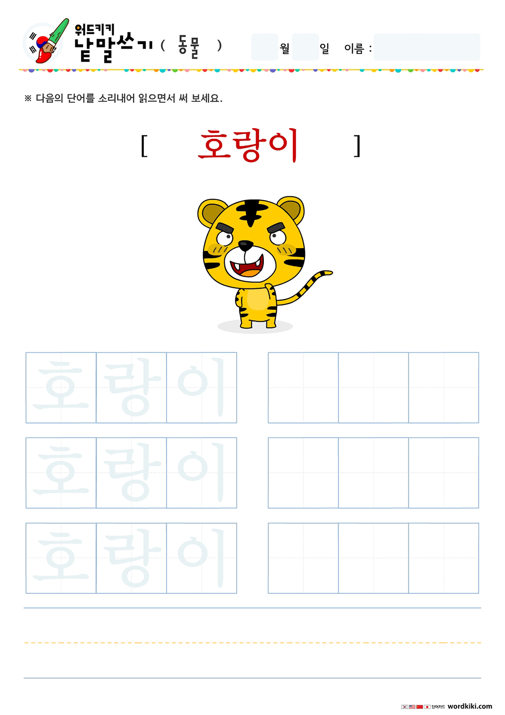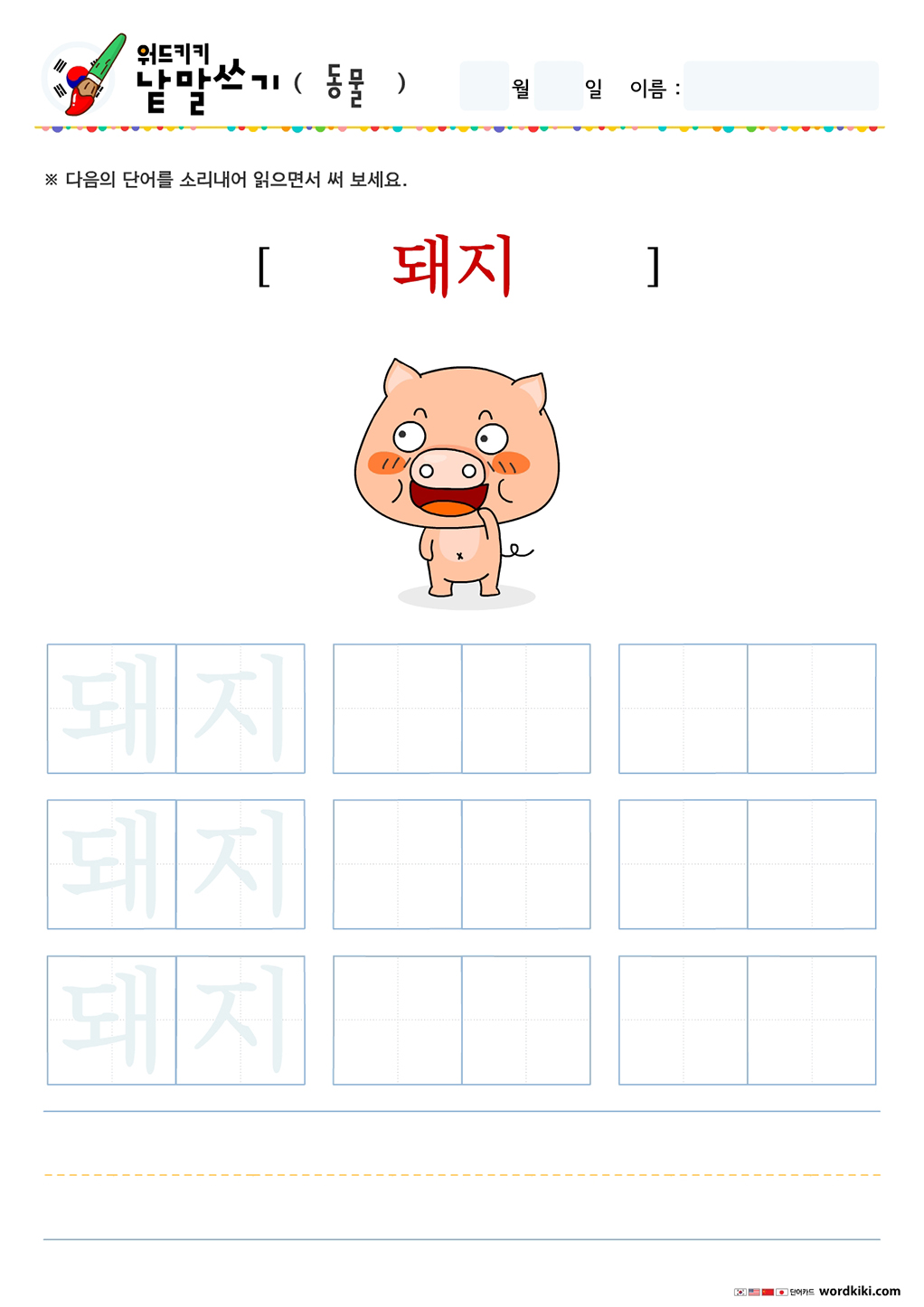 한글단어쓰기 동물 단어 따라쓰기