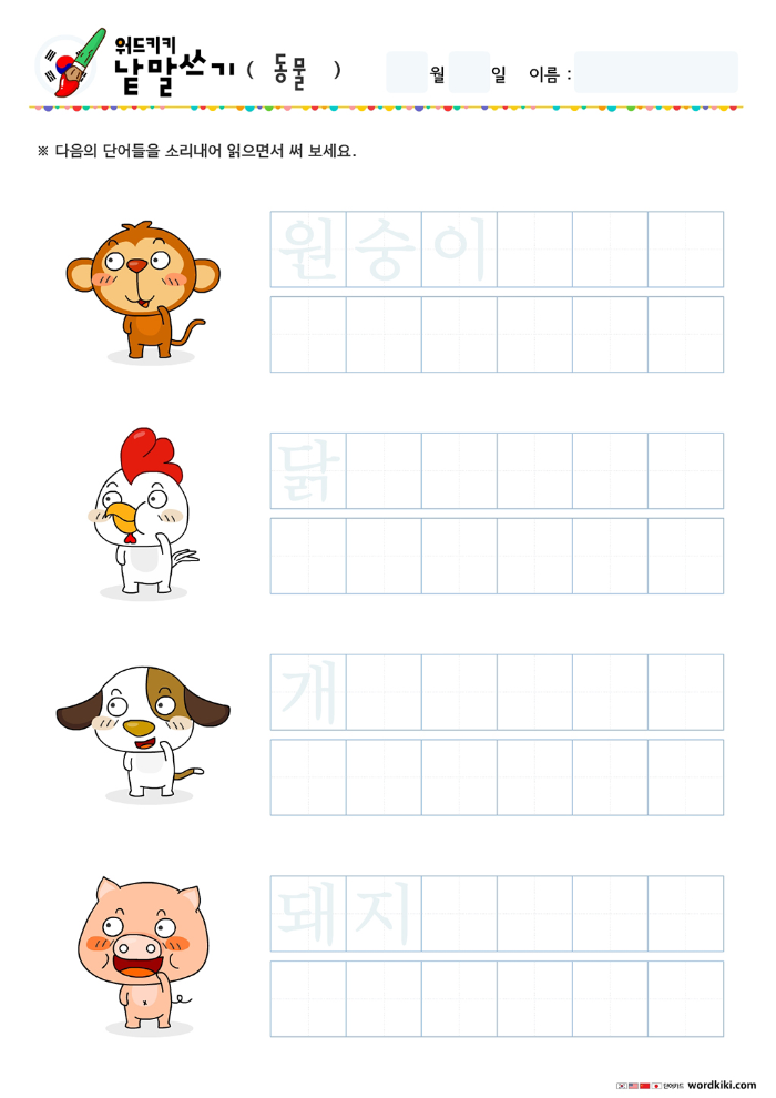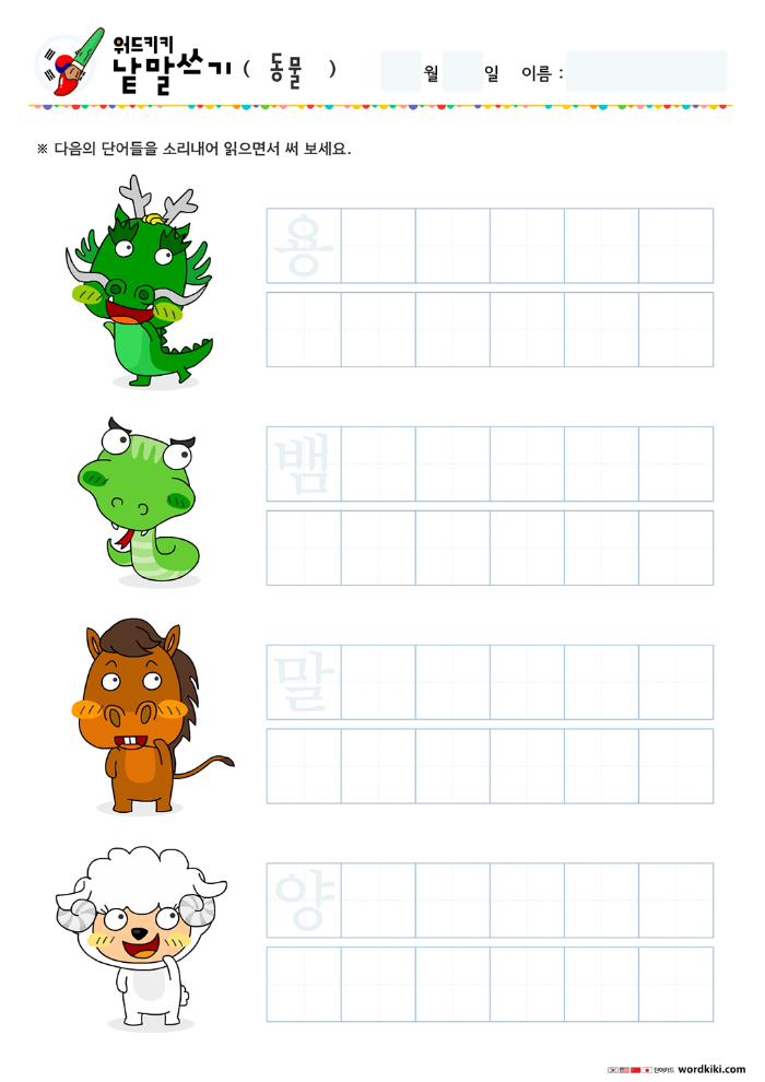 [한글단어쓰기 4장] 03-2 한국어 동물 단어쓰기 (작은글자) – korean Writing – Animal