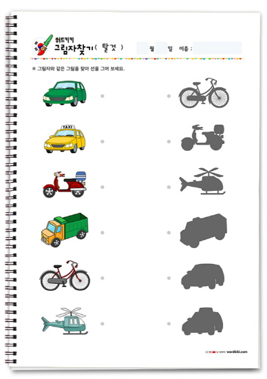 비행기 선긋기, 기차 선긋기, 배, 선긋기, 스쿨버스 선긋기, 버스 선긋기, 자동차 선긋기, 택시 선긋기, 오토바이 선긋기, 트럭 선긋기, 자전거 선긋기, 헬리콥터 선긋기