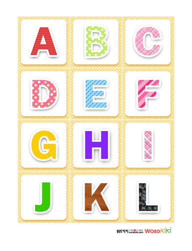알파벳 대문자 플래시 카드를 프린트 후 코팅해서 사용 하세요.