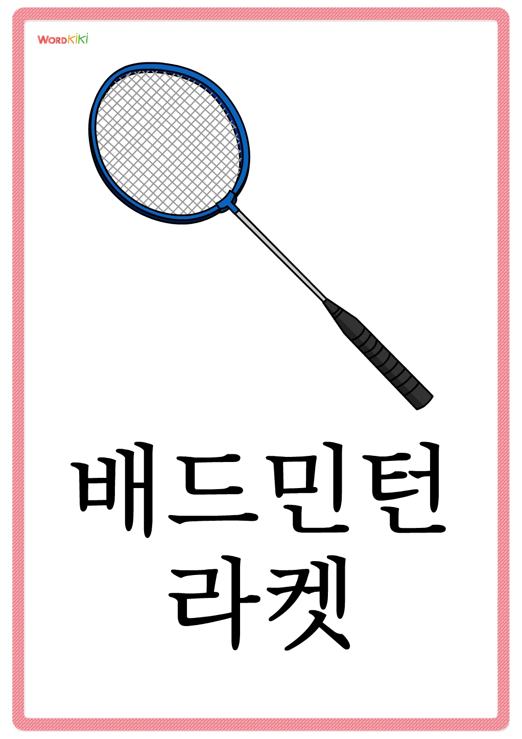 [한글단어카드 16장] 31 스포츠용품 단어카드 – Korean Sports equipment Flashcard