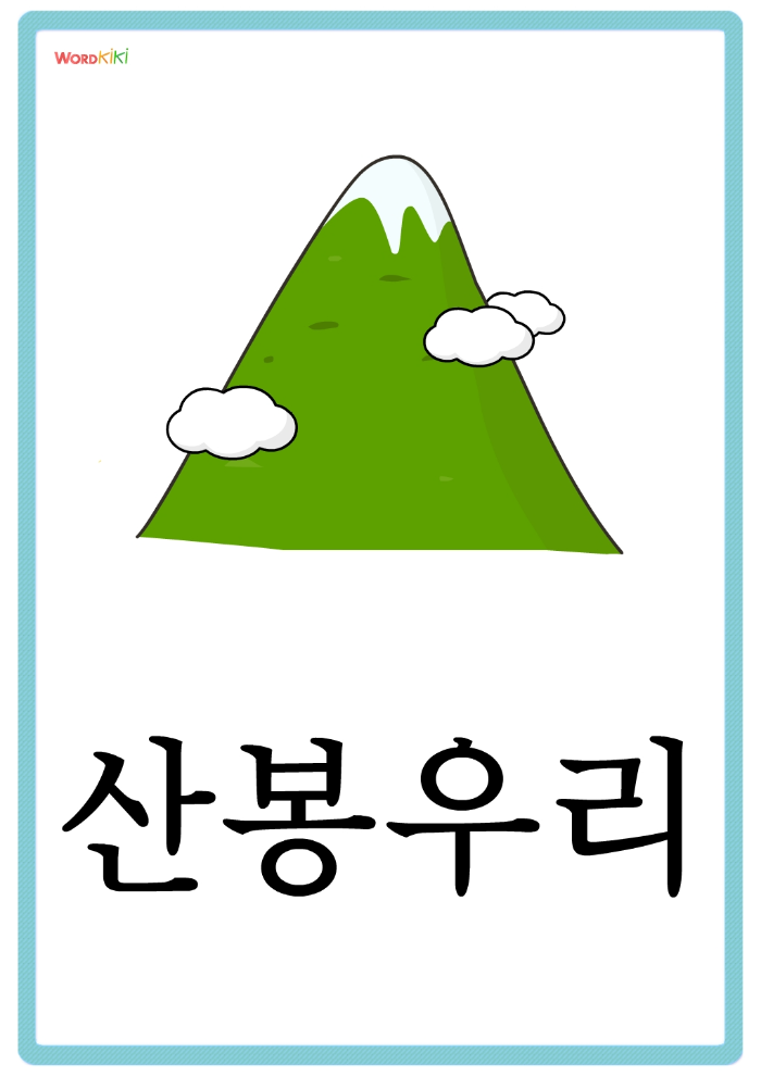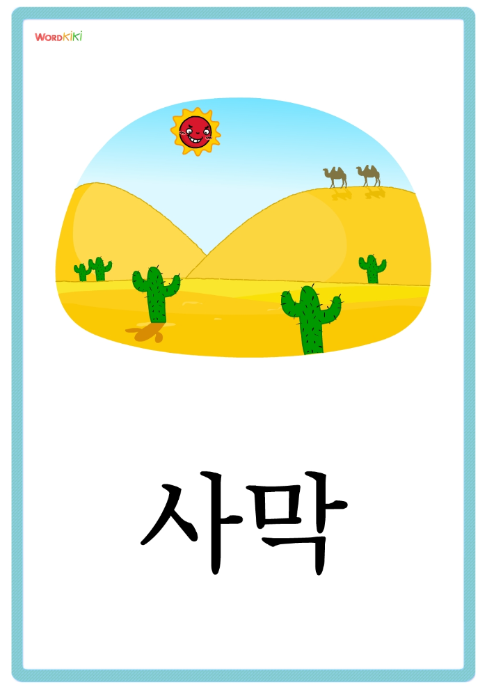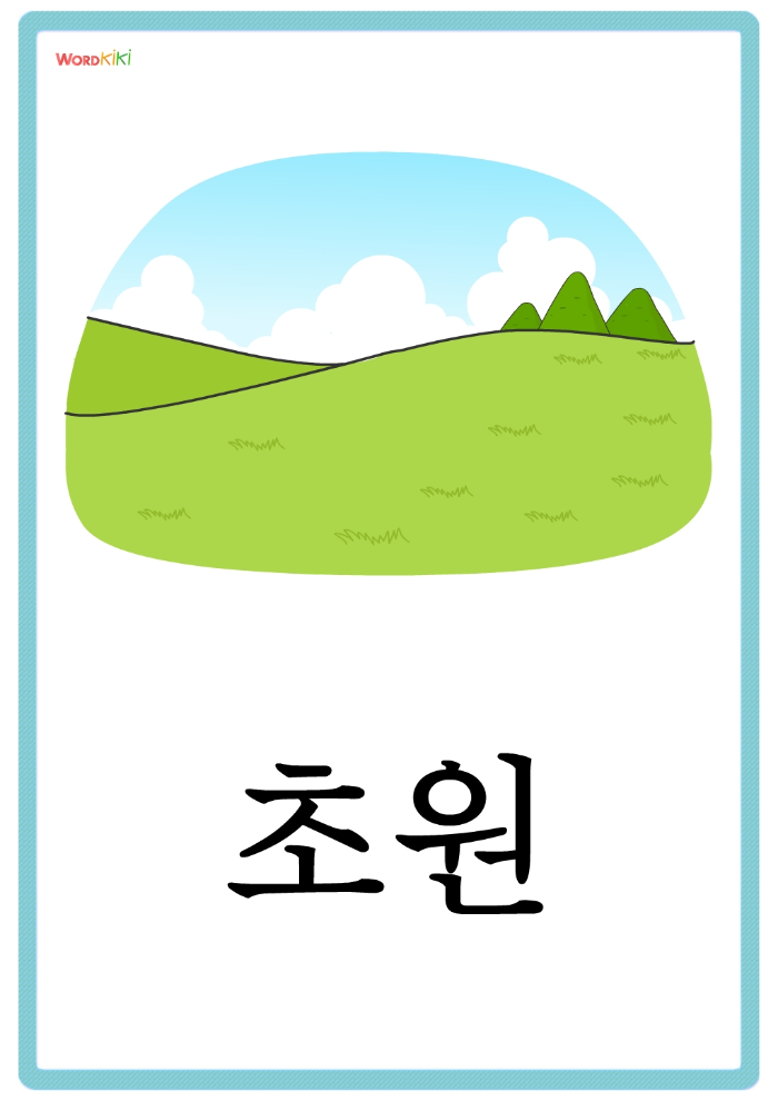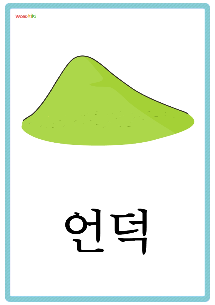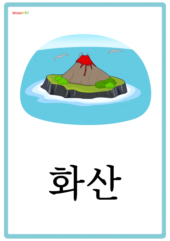 연못 단어카드, 호수 단어카드, 언덕 단어카드, 개울 단어카드, 초원 단어카드, 산 단어카드, 산봉우리 단어카드, 숲 단어카드, 폭포 단어카드, 강 단어카드, 화산 단어카드, 바다 단어카드, 바닷가 단어카드, 섬 단어카드, 사막 단어카드, 바위 단어카드, 절벽 단어카드, 동굴 단어카드