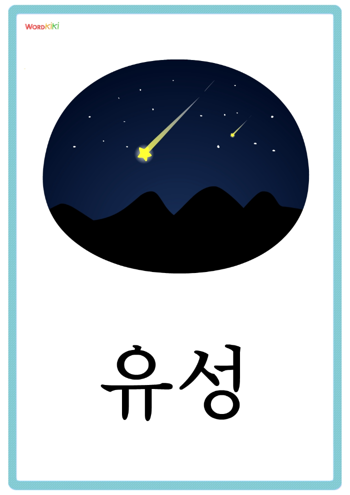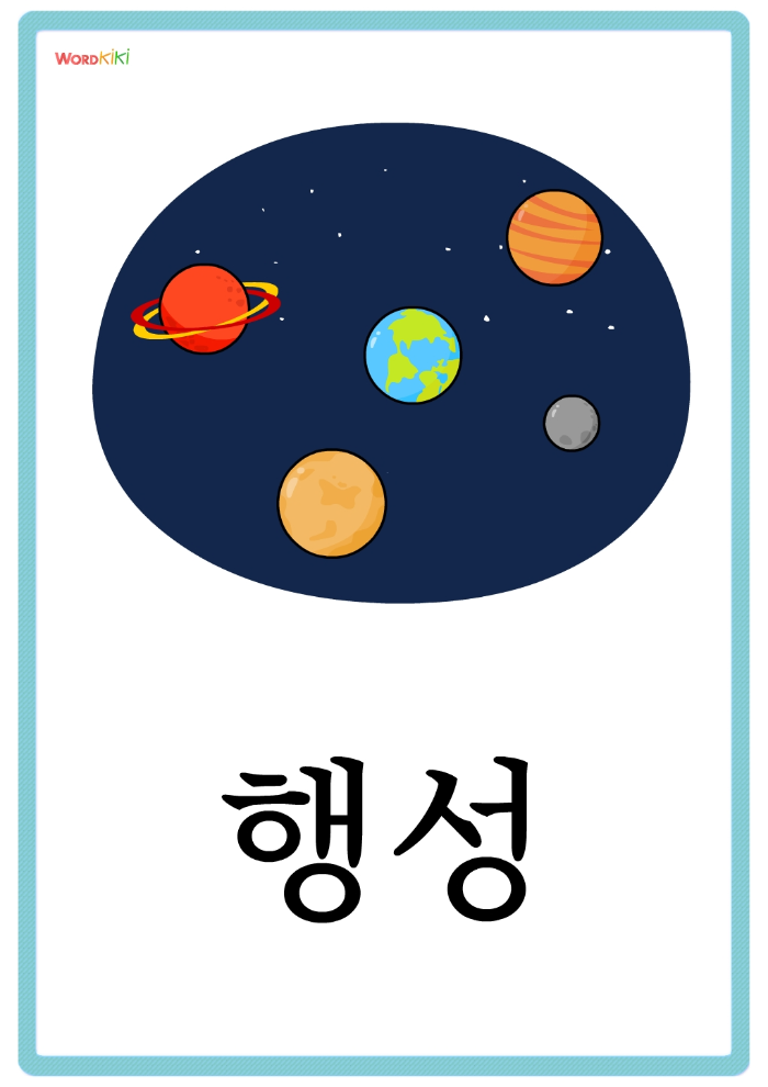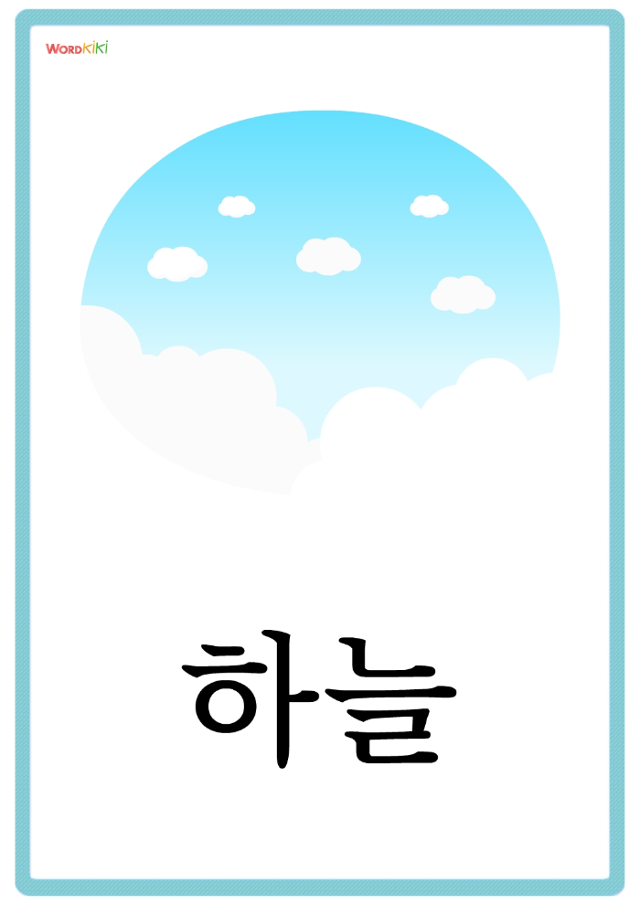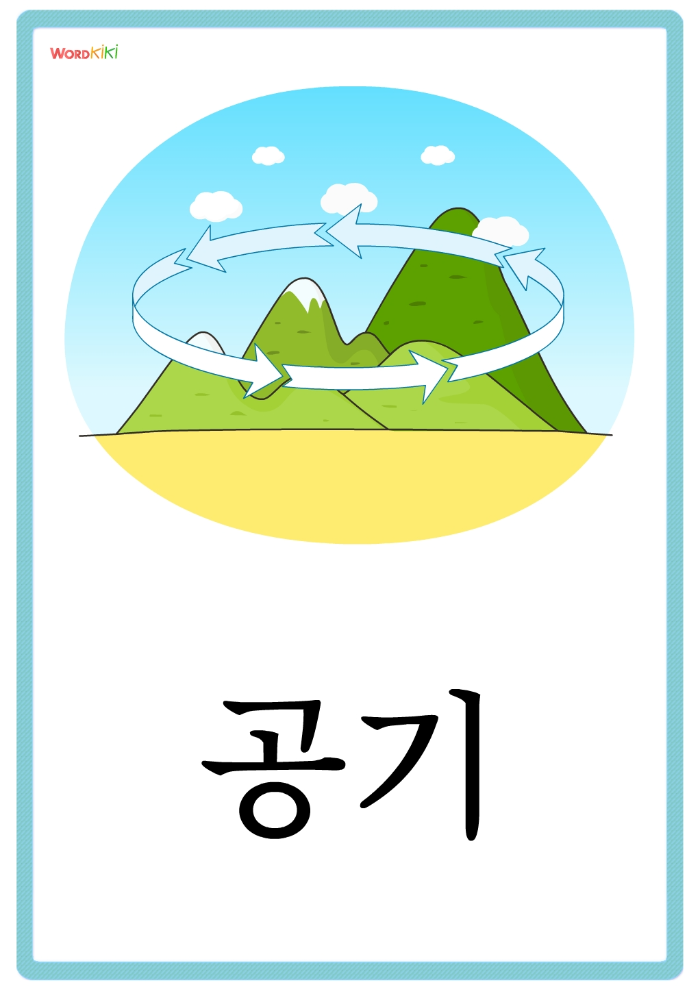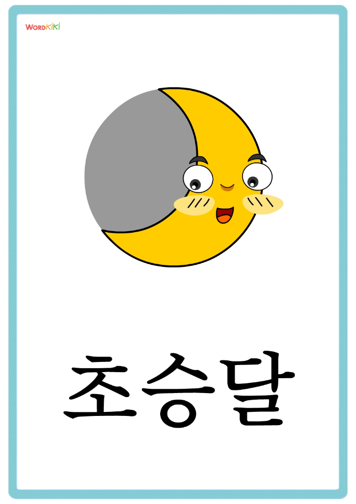 태양 단어카드, 구름 단어카드, 달 단어카드, 별 단어카드, 무지개 단어카드, 유성 단어카드, 행성 단어카드, 지구 단어카드, 초승달 단어카드, 반달 단어카드, 보름달 단어카드, 공기 단어카드, 흙 단어카드, 물 단어카드, 나무 단어카드, 돌 단어카드, 얼음 단어카드, 하늘 단어카드
