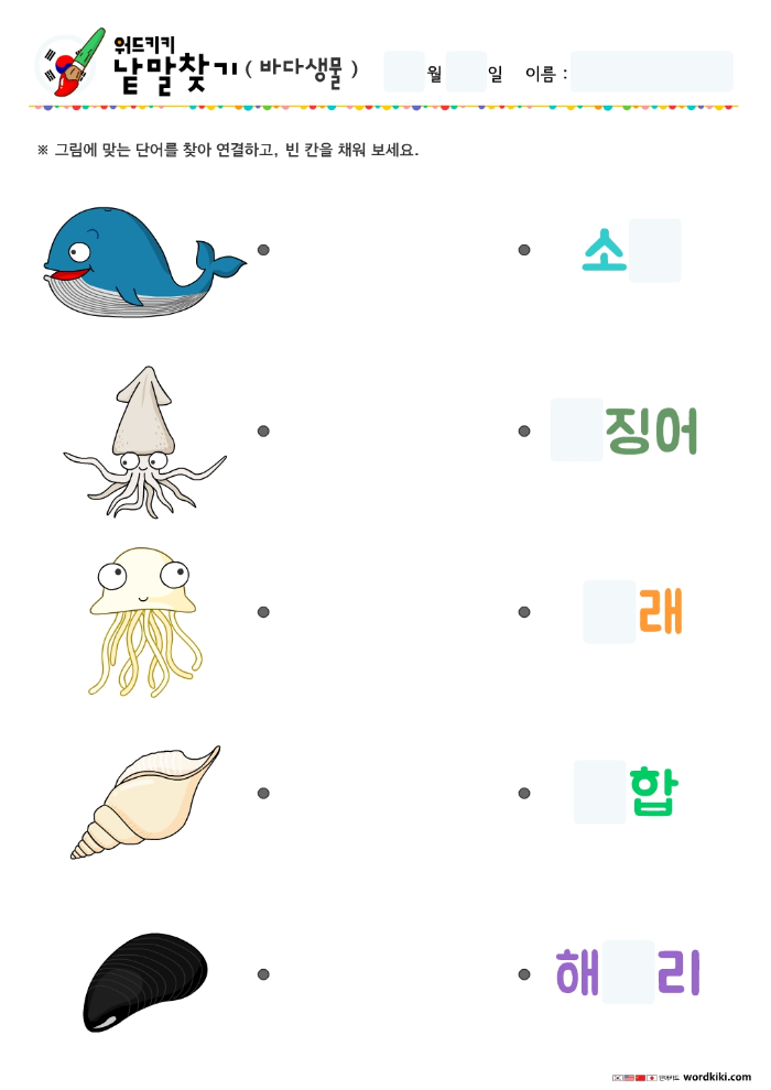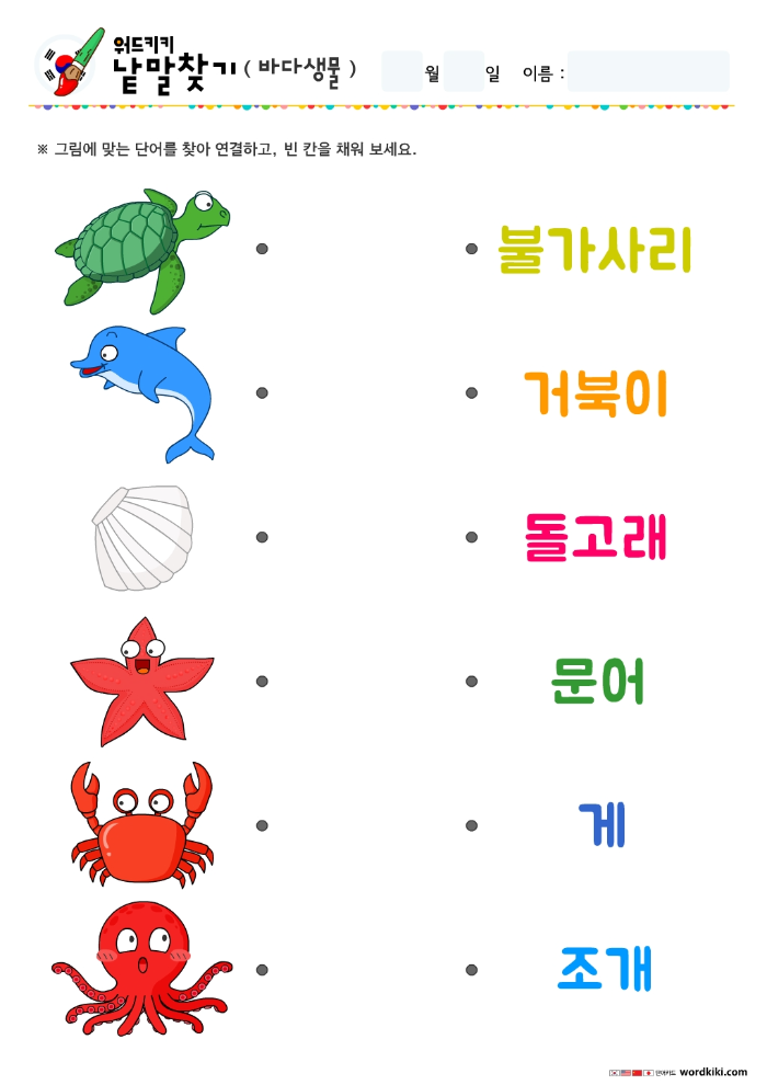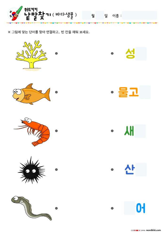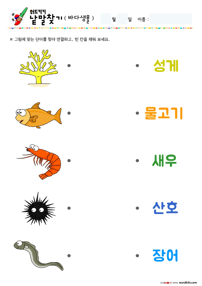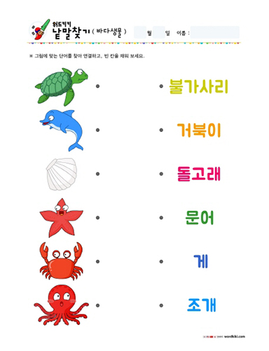 바다생물단어-단어연결하기