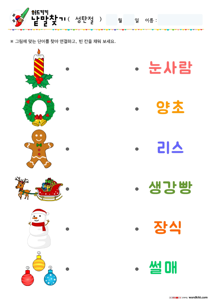 크리스마스 단어그림 연결하기/ 성탄절 낱말찾기.