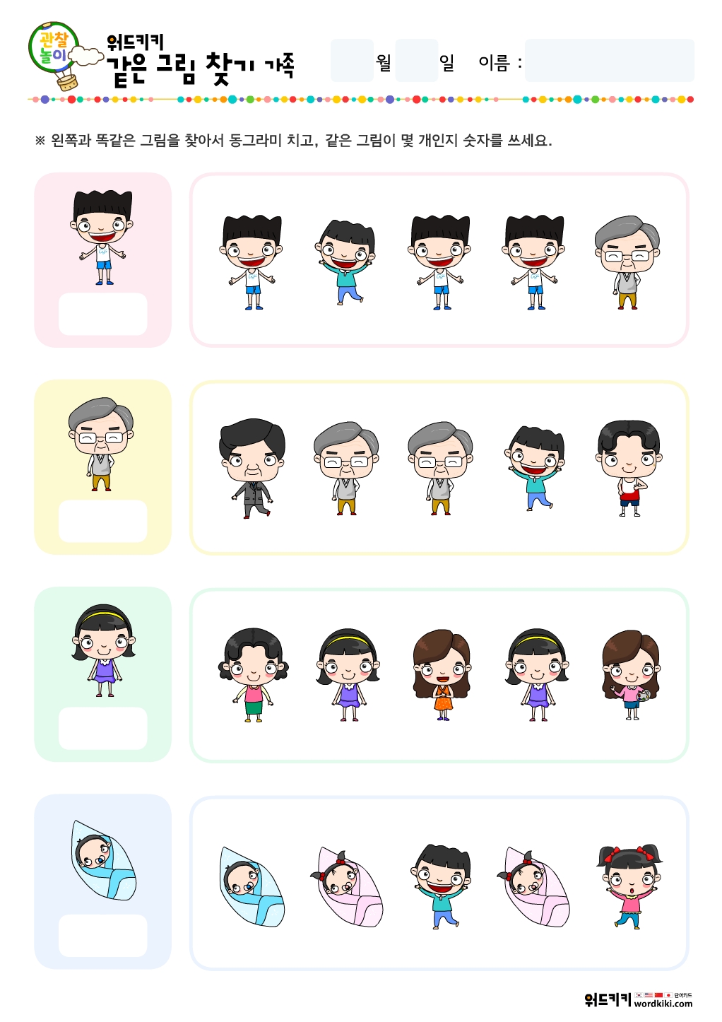 [관찰놀이 활동지 6장] 가족 - 같은 그림 찾기