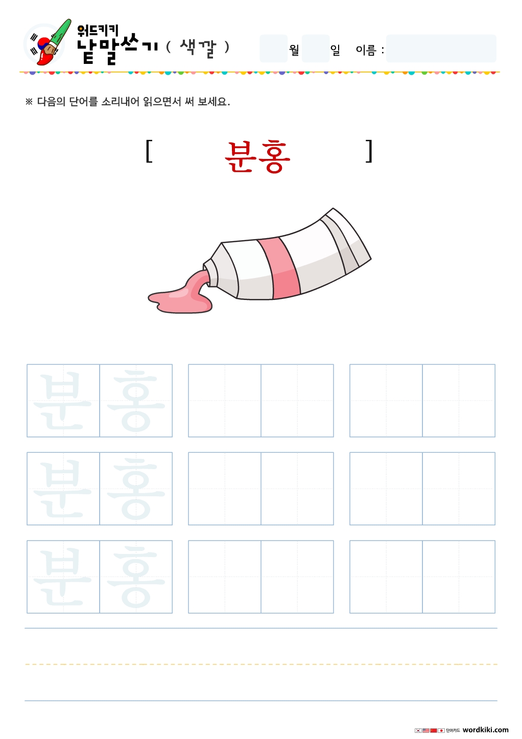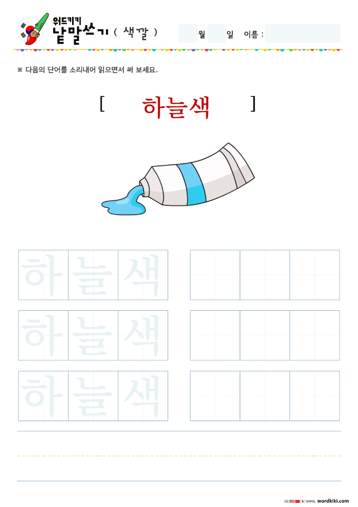 한글단어쓰기 색깔 단어 따라쓰기