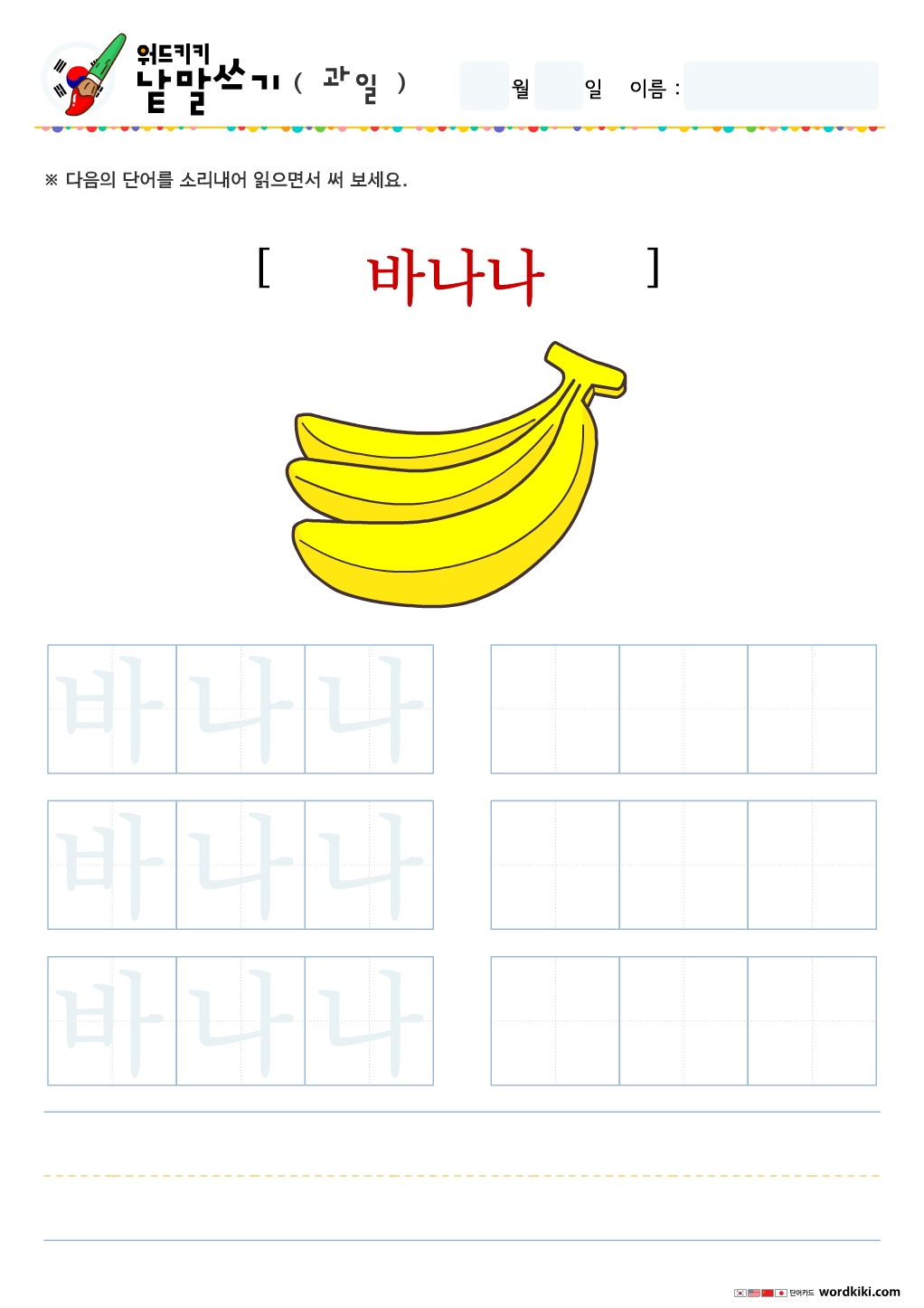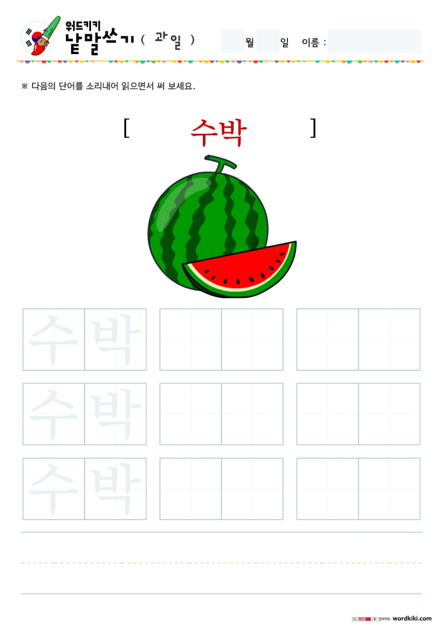 무료프린트학습지로 한글 단어 공부를 위한 쓰기 연습장입니다.
