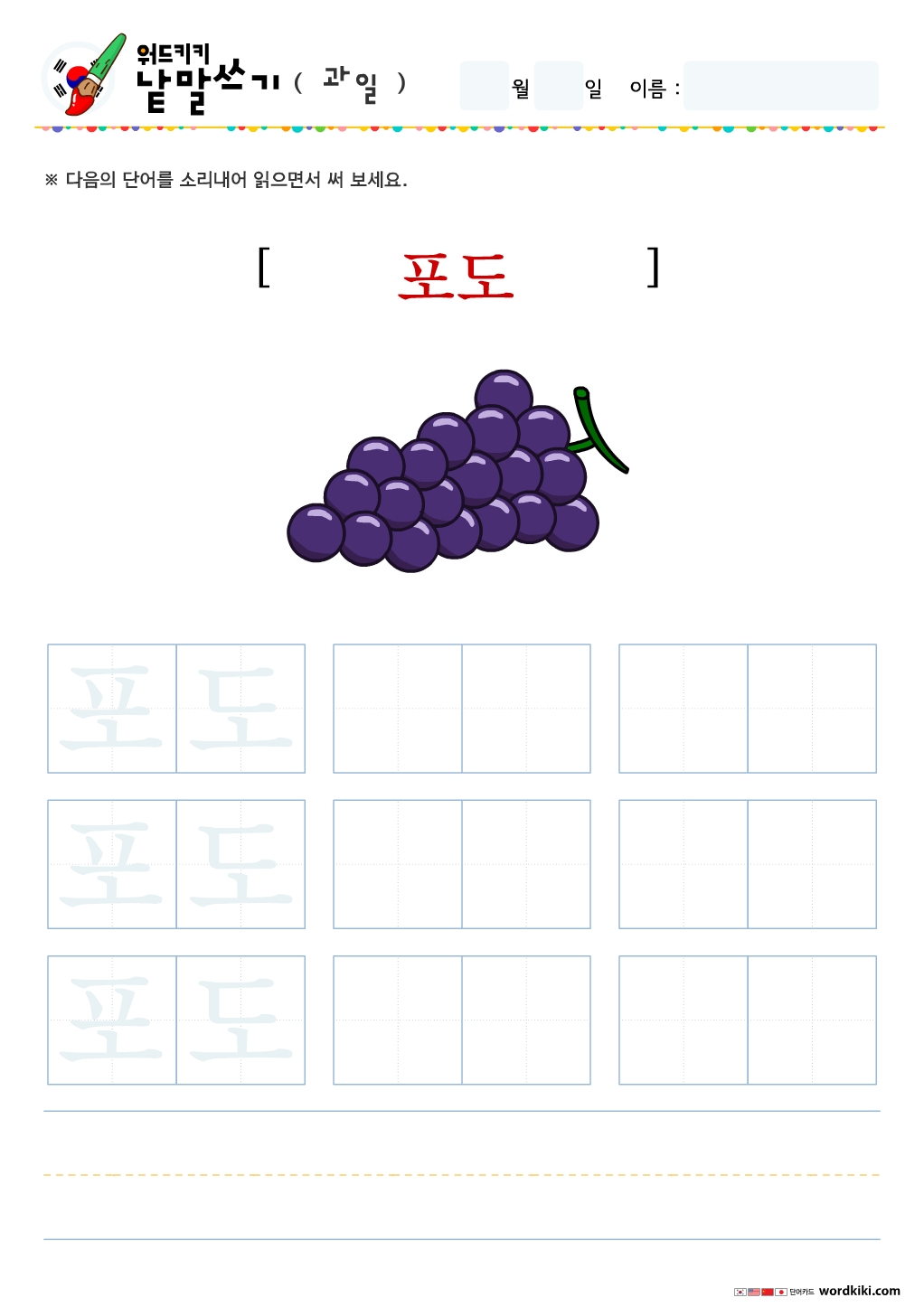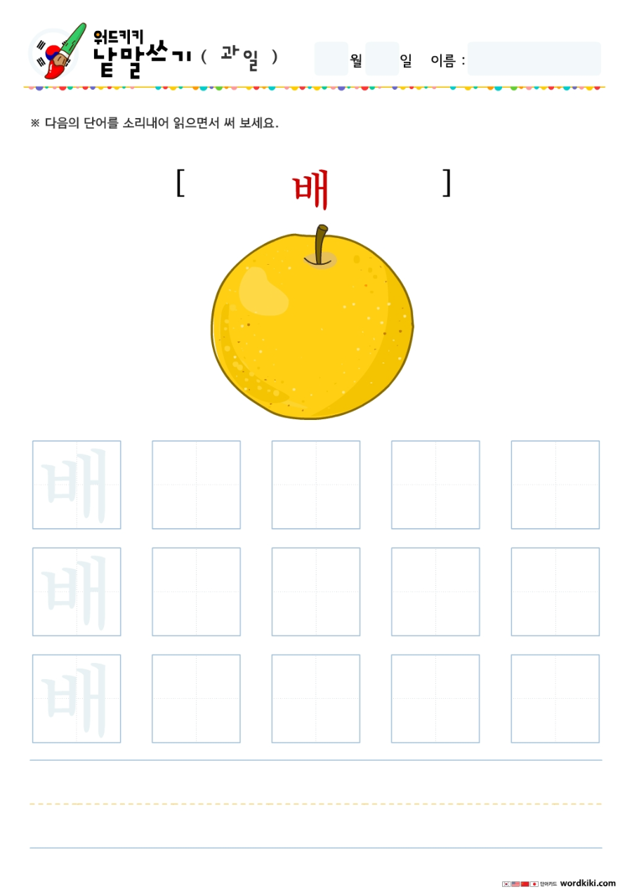 [한글단어쓰기 12장] 06-1 한국어 과일 단어쓰기 (큰글자1) korean Writing - Fruit