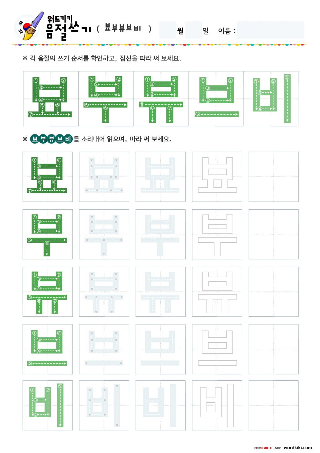 바뱌버벼보뵤부뷰브비 쓰기