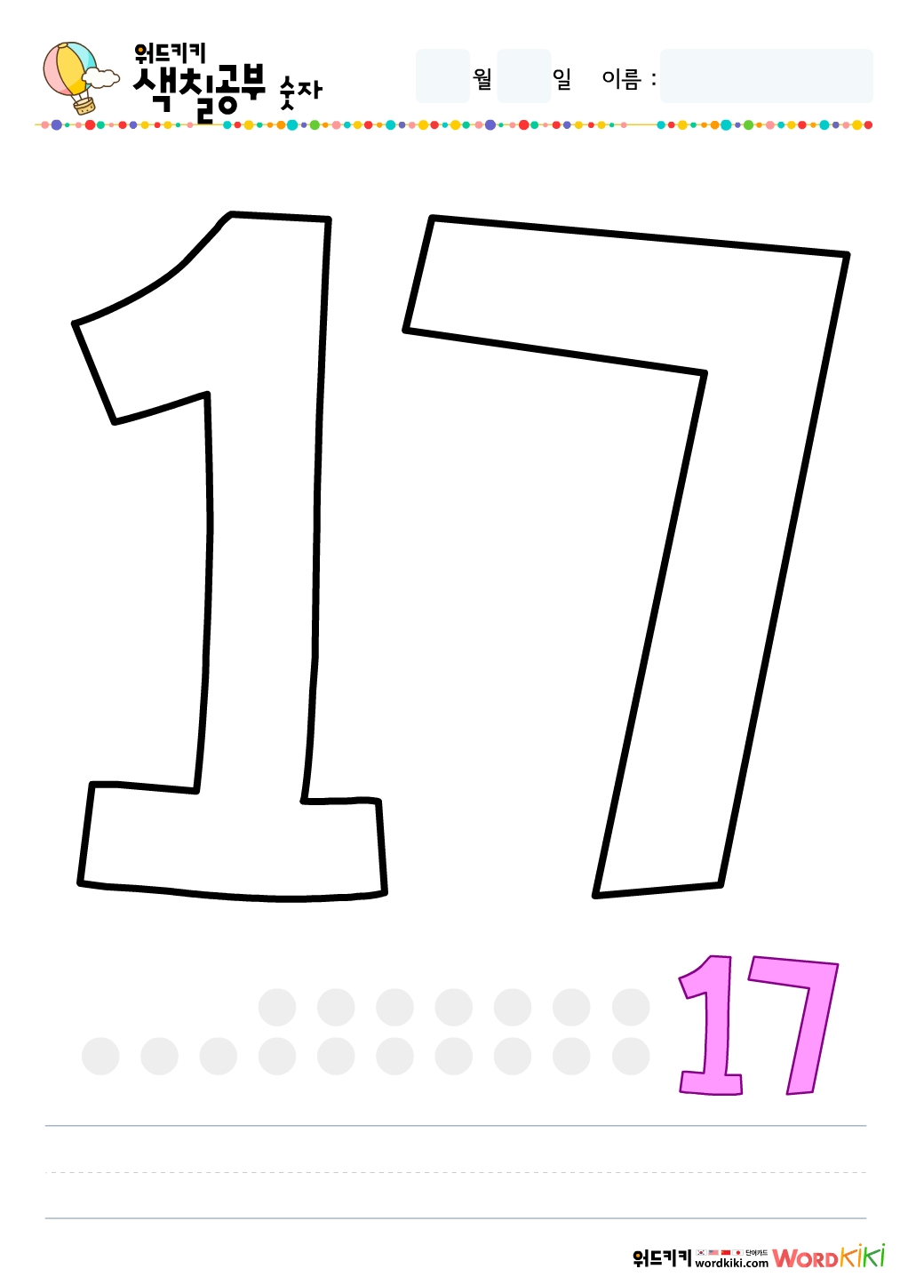 숫자색칠공부 - 숫자17색칠하기