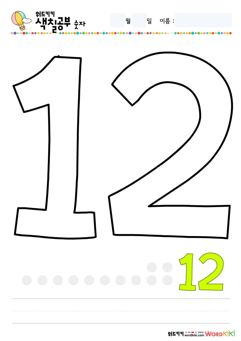 숫자색칠공부 - 숫자12색칠하기