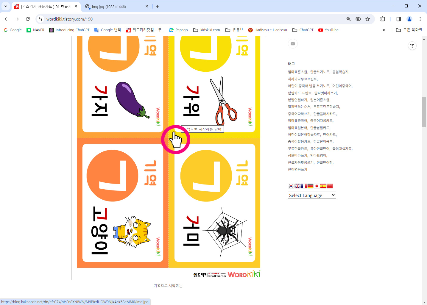 2. 새창으로 열린 이미지에 마우스 포인터를 위치시킵니다.